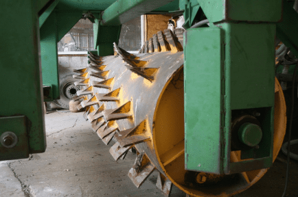 Aerators, renovators, or spiral-blade choppers, use small blades welded to heavy drums in a staggered, spiral pattern around the drum, rather than the long, longitudinally mounted blades used on conventional roller choppers. Aerators normally use two drums mounted on a frame similar to an offset disk, and they are equipped with rubber tires for transporting. Aerators are pulled by a crawler tractor or a four-wheel drive tractor with special tire protection (see Tire Protection). Drum diameters vary from 18 to 42 inches, and the drums can be filled with water for extra weight. Width is 12 feet, but options are available. Tractor horsepower requirements vary between 120 and 350 and depend on chopper size, weight, tree/shrub size, and type of terrain.